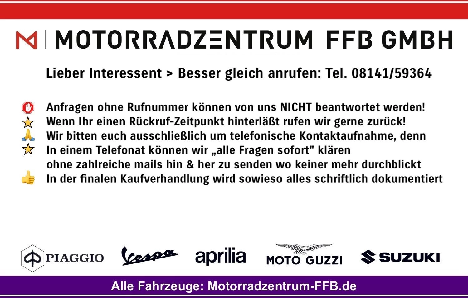 Anfragen ohne Rufnummer werden NICHT beantwortet!