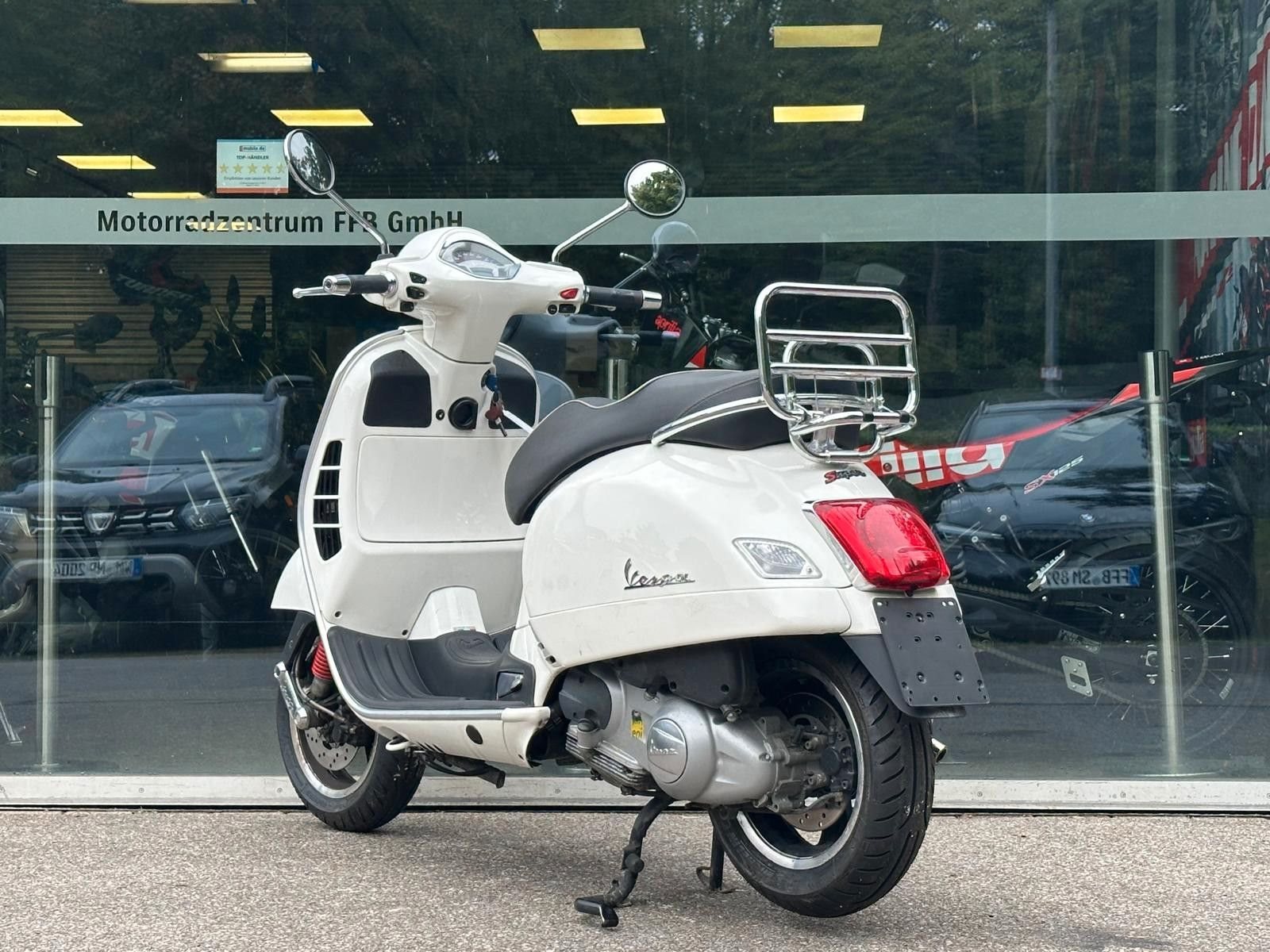 Zum Verkauf steht eine elegante Vespa GTS 300 aus dem Jahr 2015. Mit ihrem zeitlosen Design, kräftigem Motor und typisch italienischem Fahrgefühl ist sie sowohl für die Stadt als auch für längere Touren bestens geeignet.